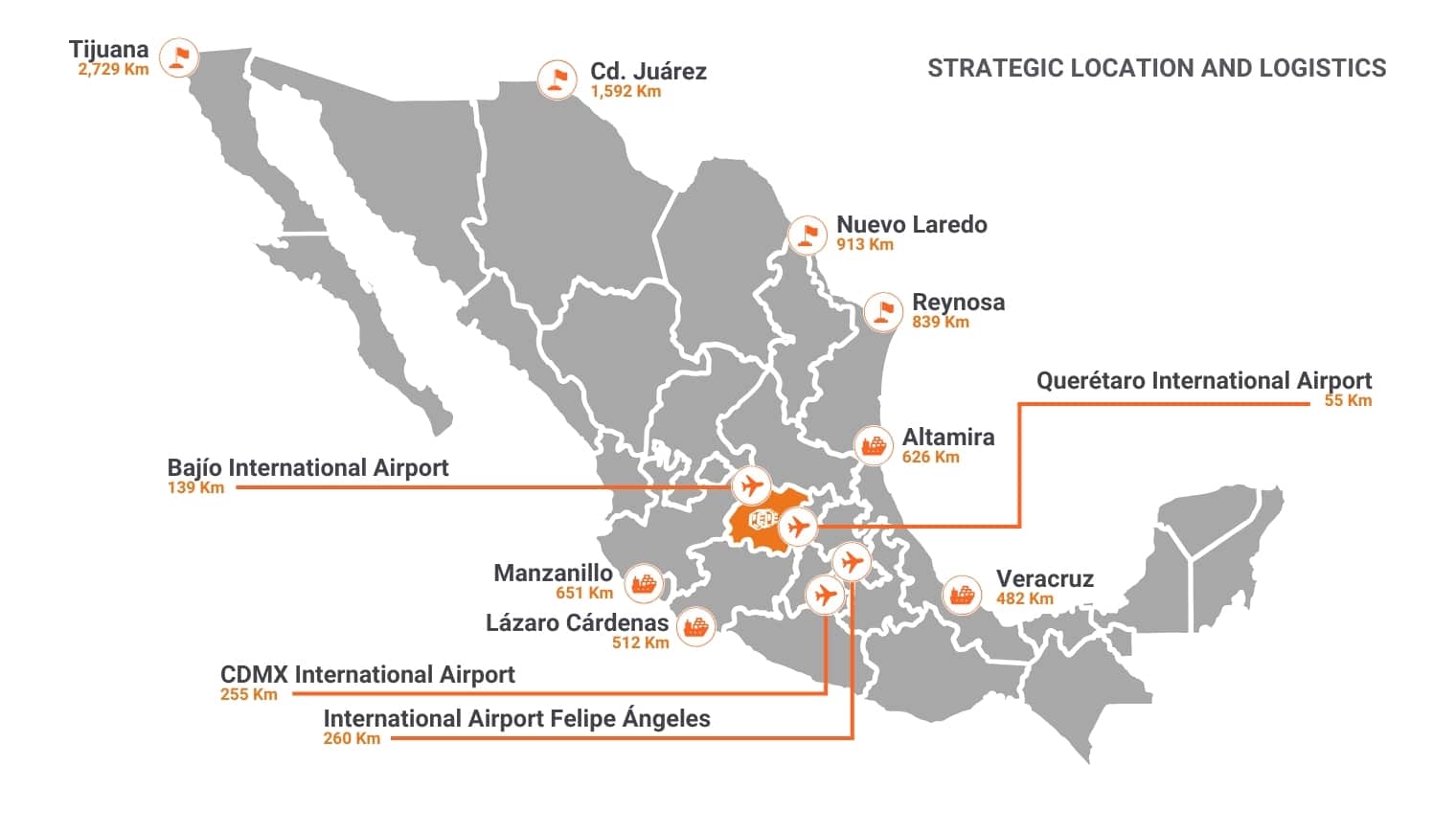 - Market Reach: Within a 250-mile radius of the park, investors can access 80% of Mexico’s total market, 70% of its industrial base, and 60% of the total population