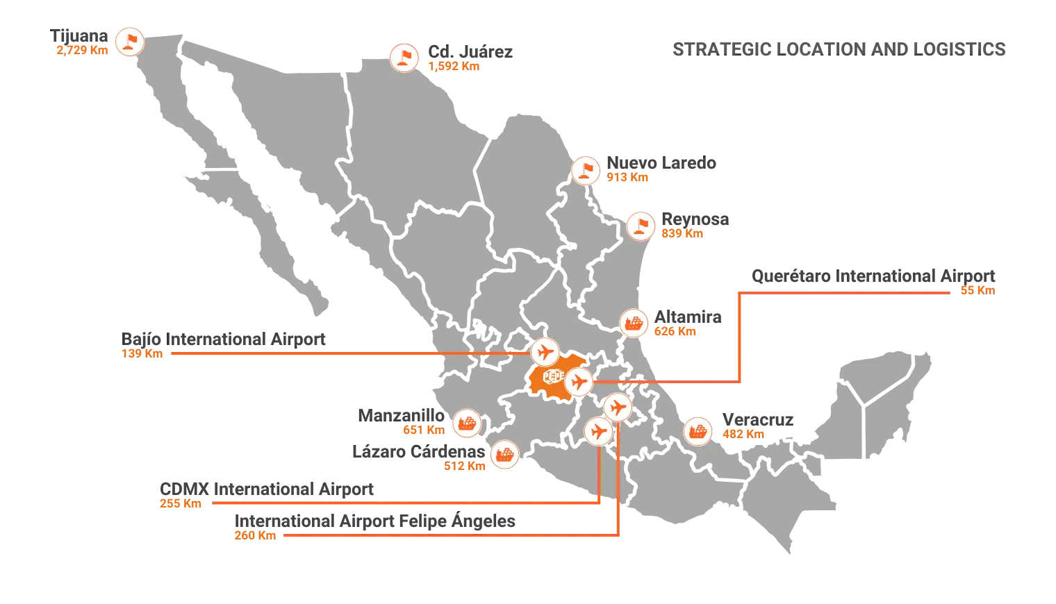 - Market Reach: Within a 250-mile radius of the park, investors can access 80% of Mexico’s total market, 70% of its industrial base, and 60% of the total population