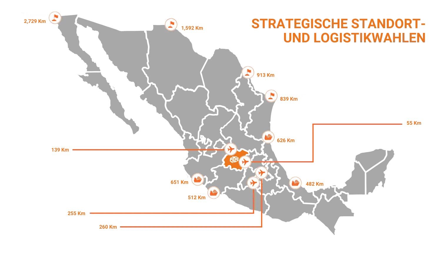 - Marktreichweite: Innerhalb eines Radius von 250 Meilen um den Park können Investoren 80% des Gesamtmarktes in Mexiko, 70% der industriellen Basis und 60% der Gesamtbevölkerung