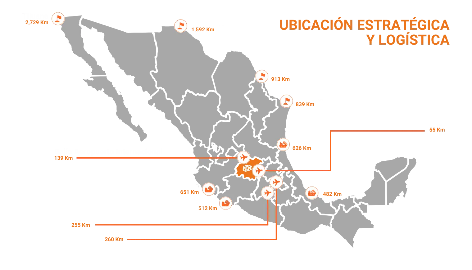 - Alcance del mercado: En un radio de 400 km alrededor del parque, los inversionistas pueden acceder a 80% del mercado total de México, 70% de su base industrial y 60% de la población total.