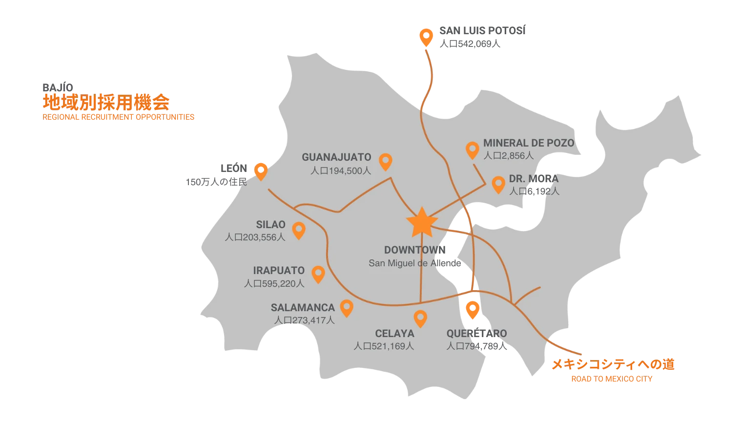 メキシコのバヒオ地方は、その地理的位置と...