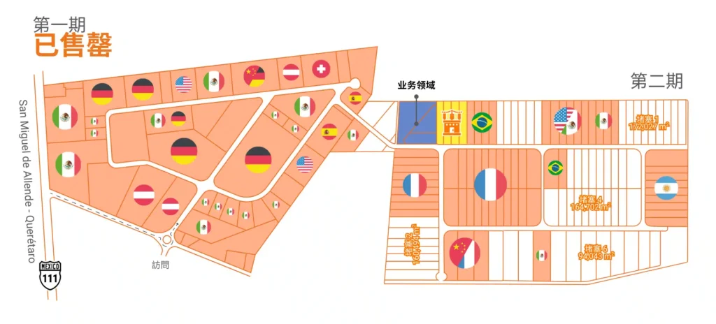 - 市场覆盖范围: 在公园方圆 250 英里的范围内,投资者可以获得 占墨西哥总市场的 80%, 70% 的工业基础和 60% 的总人口